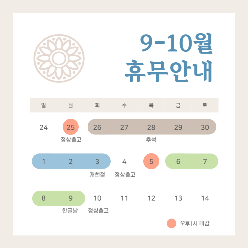 ¾Æ·¡¿Í °°ÀÌ <23³â 9-10¿ù ÈÞ¹«ÀÏÁ¤> ¾È³»µå¸³´Ï´Ù.